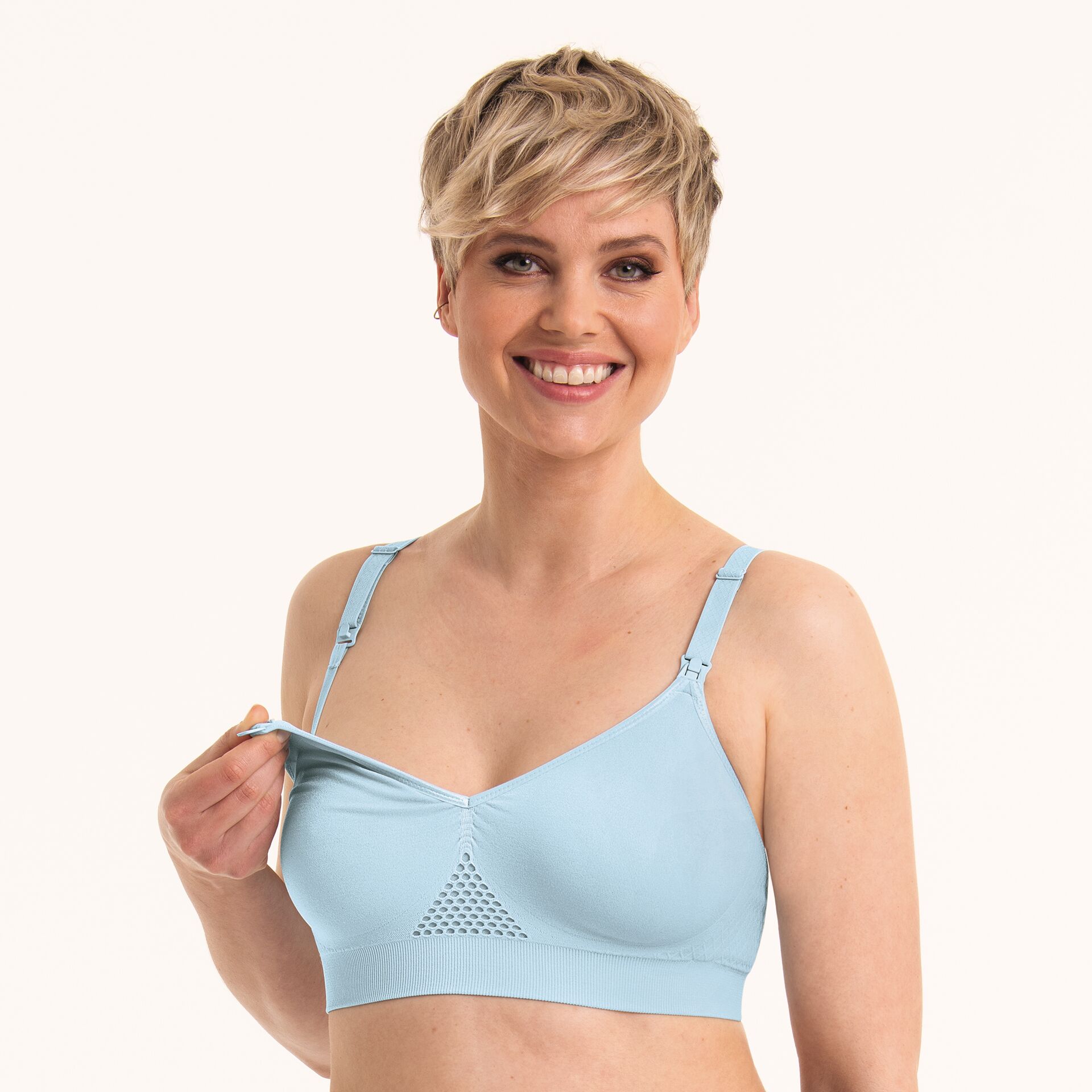 Delikatny bezszwowy biustonosz wykonany z lekkiej mikrofazy. Nie posiada fiszbin. Miseczki posiadają kieszonkę na wkładki. Dzięki zastosowanym materiałom i konstrukcji biustonosz jest niezwykle wygodny. Obwód podszyty bardzo elastyczną gumą. Zapięcie trzystopniowe na dwie lub trzy haftki. Dzięki specjalnym klipsom można odpinać ramiączka i karmić maluszka.